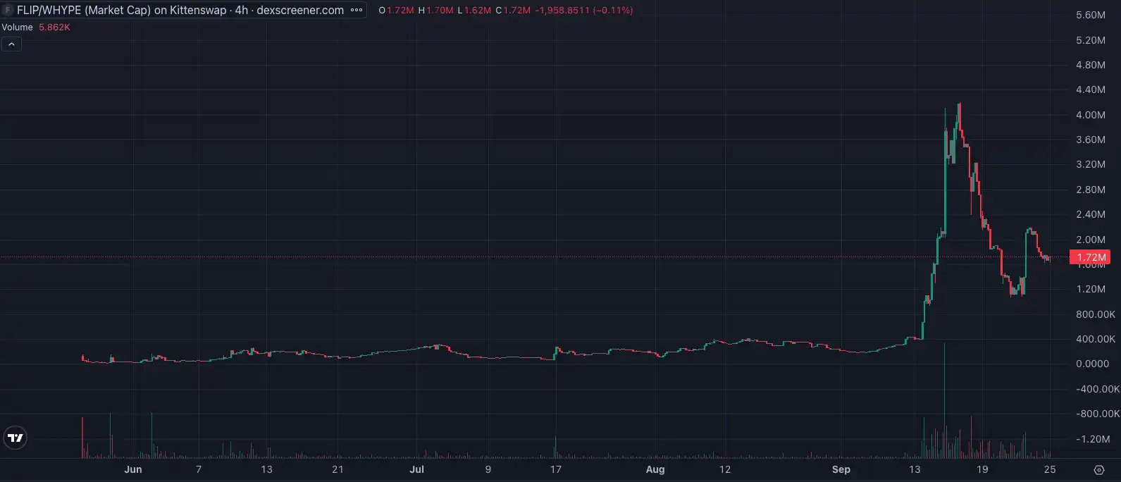 而「理所当然」的 FLIPgo 也拥有属于自己的直播币 $FLIP,现在 HyperEVM 上发行,代币市值现报价 150 万美元。
