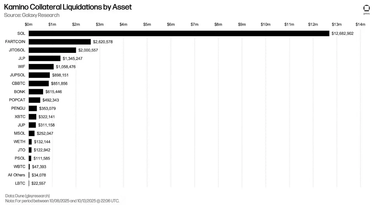 Kamino 在 10 月 8 日至 10 日期间也经历了大量的清算,期间价值 1270 万美元的 WSOL 和价值 260 万美元的 FARTCOIN 被清算。