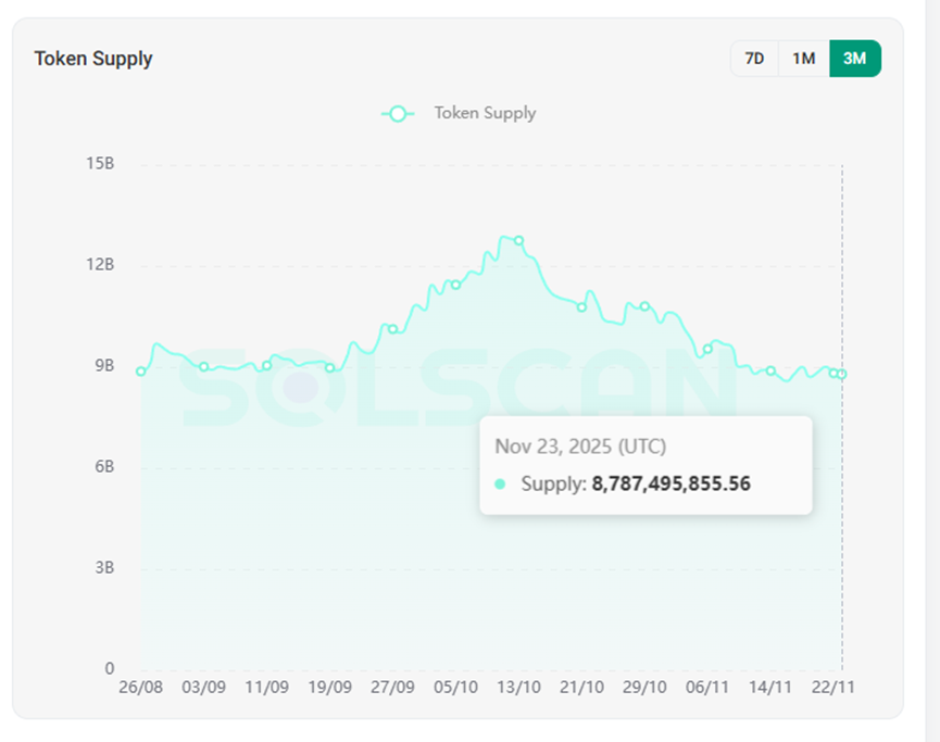 USDC下降背后,主要是Solana链近一个月的USDC发行量下降了18.24%,10月11日,Solana链上发行的USDC总量约为128亿美元,到11月23日则下降至87亿美元,总量减少了41亿枚。
