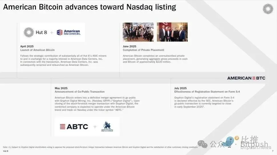 根据协议,Hut 8将其拥有的61,000台矿机全部捐赠给American Bitcoin。作为回报,Hut 8获得了American Bitcoin 80%的股份。