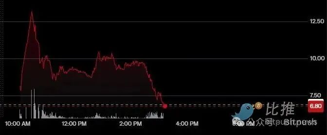 当天,该股在开盘后一小时内因波动剧烈被纳斯达克暂停交易五次,多次冲高至 14 美元,而后回落至 9.50 美元上下,回调超过一半涨幅。