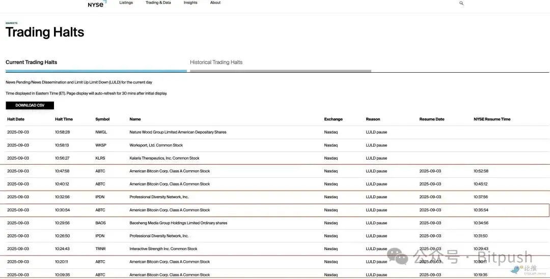 市场数据显示,ABTC 开盘盘中最高曾暴涨逾 110%,但最终收涨约 17%。
