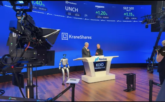 OpenMind 的人形机器人亮相纳斯达克,与 KraneShares 一起见证全球首支“人形与具身智能 ETF”的正式推出。