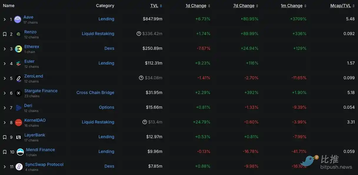 · 技术优势:作为 zkEVM Layer 2 网络,Linea 提供与以太坊完全兼容的环境,低费用和高吞吐量推动其 TVL 增长至 12 亿美元。