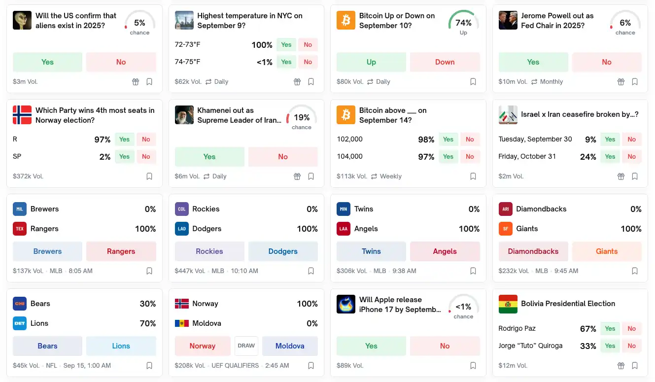 许多看似荒诞的热点议题在该平台上都有对应市场,这实际上将 Meme 文化融入了预测交易。用户可以对流行梗、名人话题等下注,这种娱乐化参与降低了门槛,也提高了趣味性。