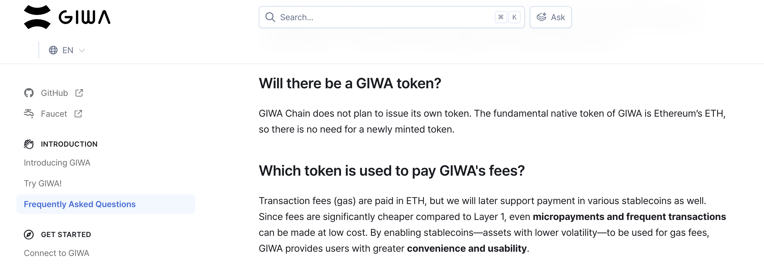 是否发行代币是社区的关注焦点之一,GIWA给出了明确的答案:不会。官方文档称,GIWA 的基础原生代币是以太坊的 ETH,因此无需新发行代币。