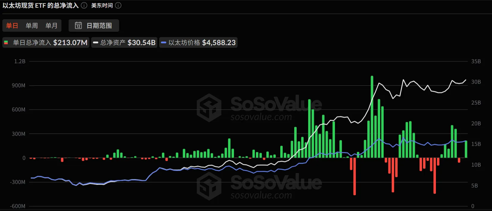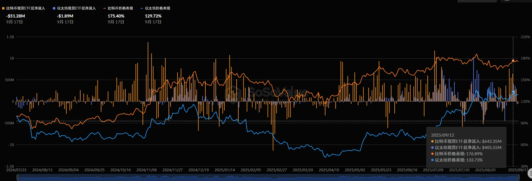 本周以太坊ETF资金流动情况相较于上周2.1458亿美元的净流出来说是出现了9.1472亿美元的净流入,但净流入水平和8月份相比并不算高,并且本周仍然是低于比特币的ETF资金流入水平,反应到以太坊的价格上虽然也有不错的反弹,但是和比特币和sol相比还是相当偏弱一些,后续还有持续跟踪其下周的ETF资金流入情况。