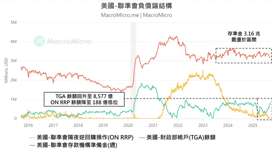 ON RRP(隔夜逆回购)已降至188亿的超低水位。