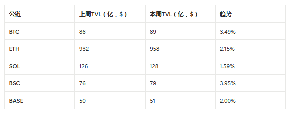 本周链上TVL小幅增长,整体情况较好,特别是eth链 增长明显。