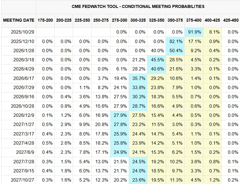 - 2026年与2027年: 中位数均显示将各再降息1码,分别降至3.25%~3.50%和3.00%~3.25%区间。