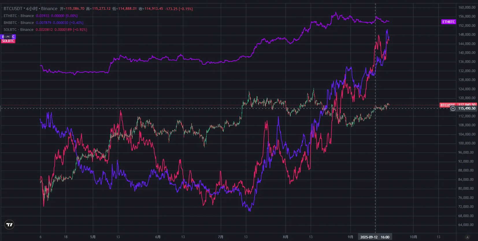 SOL/BTC、ETH/BTC、BNB/BTC 汇率