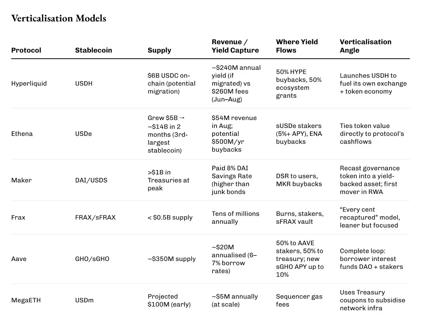 去中心化金融(DeFi)协议正掀起一场“垂直化”变革,旨在颠覆由Tether(USDT)和Circle(USDC)主导的稳定币市场,核心目标是截留原本由这些发行方赚取的巨额储备金收益。