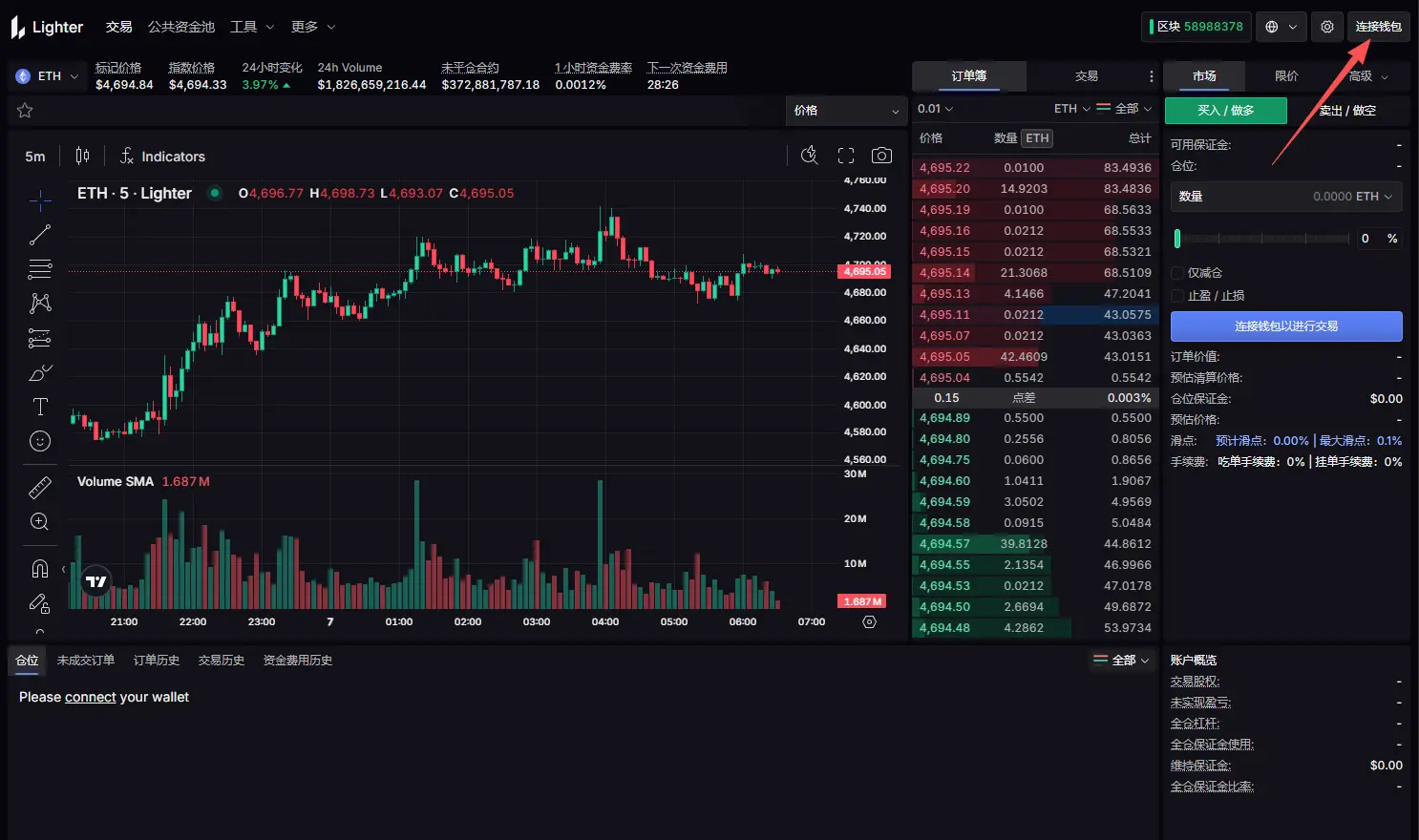 STEP 1. 进入官方平台(链接:https://app.lighter.xyz/trade/),连接钱包完成账户登陆。