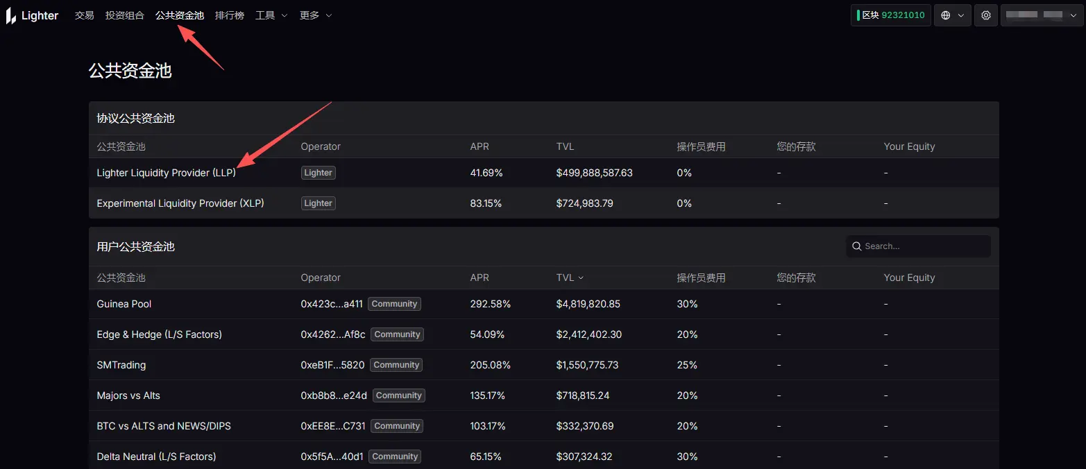 STEP 2. 点击「公共资金池」后选择 LLP,存入资金,即可开始交易赚积分。