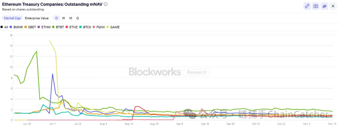 机构近期动作似乎也捕捉到了这一偏差。11月6日,ARK Invest加仓21.5万股(806万美元);摩根大通三季度末持仓197万股。这并非盲目抄底,而是基于对ETH生态长期复合增长的判断。一旦以太坊价格企稳或温和反弹,收益的相对稳定性或将让BitMine的mNAV修复路径比纯杠杆型财库更为陡峭。
