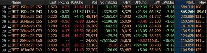 此外,截至 11 月 26日 贝莱德 IBIT 十大期权持仓如下: