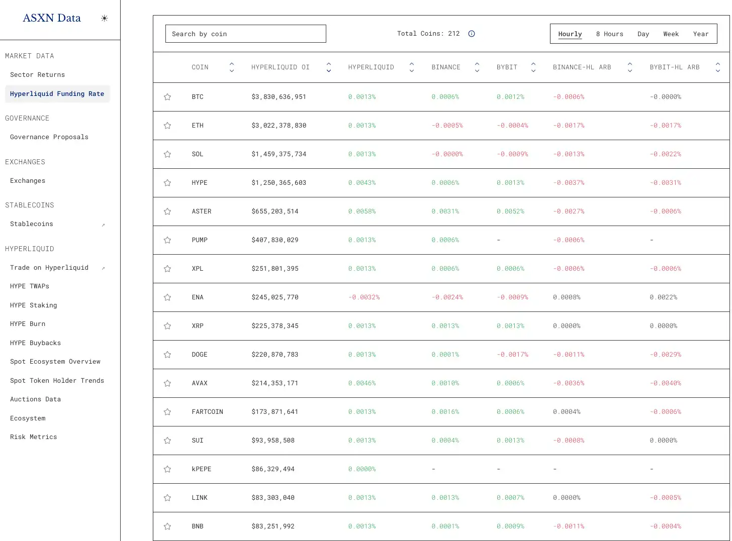 而 ASXN 虽然不如 Loris 在资金费率这个数据赛道做的完善,但是他的功能远不止于此。ASXN DATA 是由加密研究员ASXN所创建的看板,它提供了几乎一整套 Hyperliquid 数据仪表盘。