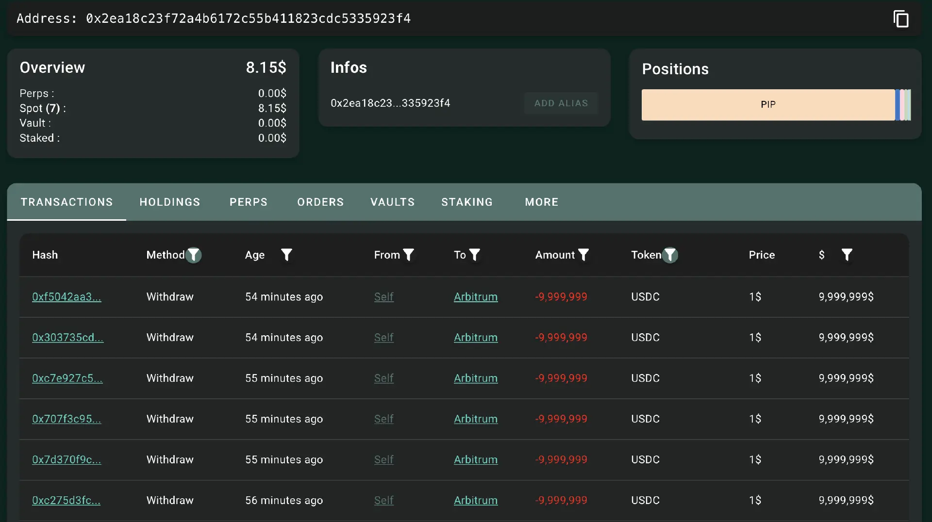 简单举个例子,Hypurrsan 数据显示,0x2ea18 开头的巨鲸地址过去 24 小时通过做空 BTC 和 ETH 盈利 7233 万美元,该巨鲸已将 6000 万美元 USDC 提回 Arbitrum,落袋为安。