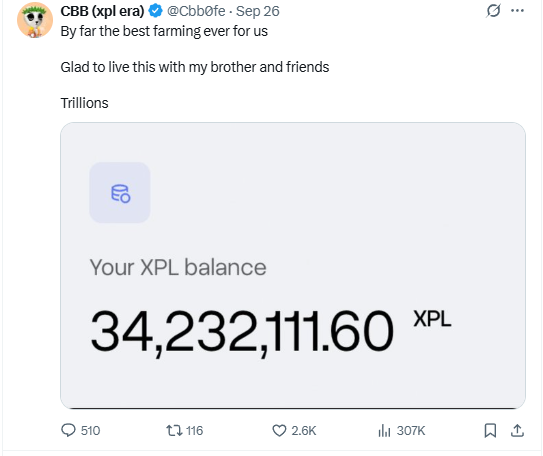 对这些大户来说,这次XPL的公募似乎成为一次带门槛的空投。因此在社交媒体上当KOL们晒出代币数量时,几乎都获得了一致的好评和社区羡慕的目光。