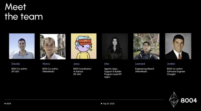 很少见到以太坊基金会(EF)这么用力推一个 ERC 标准,而且还是和 AI Agent 相关的。这项被称为「Trustless Agents(去信任智能体)」的标准,由EF新成立的去中心化AI团队(dAI)积极推动。EF明确将ERC-8004列为战略路线的重要组成部分,通过社区电话会议、builders program和DevConnect大会,持续提供资源与生态协作。
