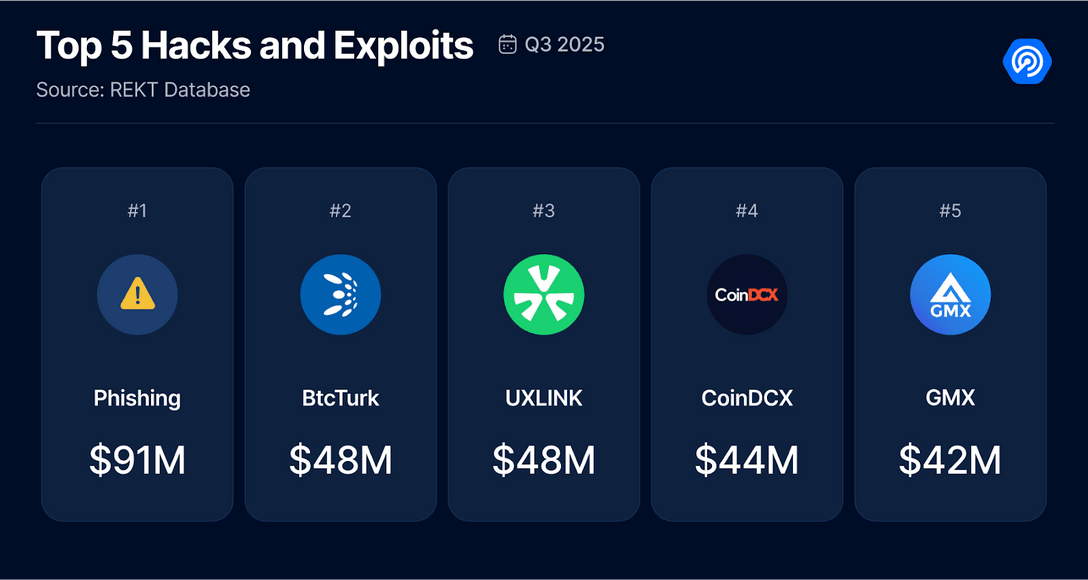 Q3 第二大事件是土耳其交易所 BTCTurk 遭黑客攻击。然而,排名第一的是一名受害者,其通过社交工程骗局损失了 783 枚比特币(约合 9100 万美元)。攻击者通过冒充交易所和钱包客服欺骗该受害者。具体细节未知,但随着 AI 工具的兴起,此类攻击似乎更有可能发生。