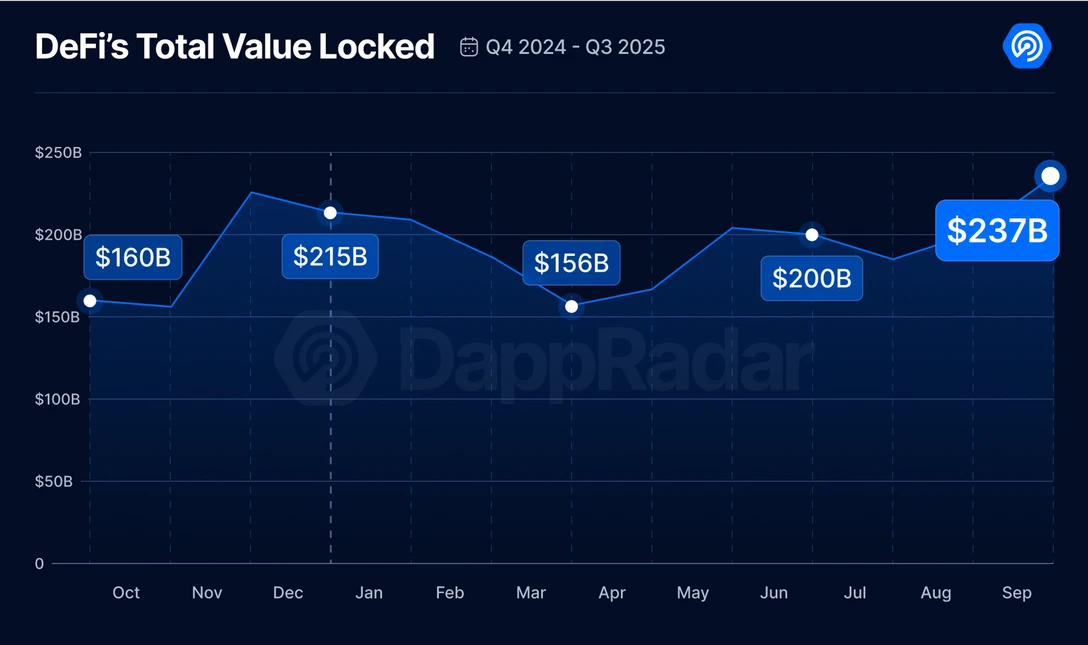 2025年三季度Dapp报告:DeFi TVL创新高,NFT交易额翻倍增长