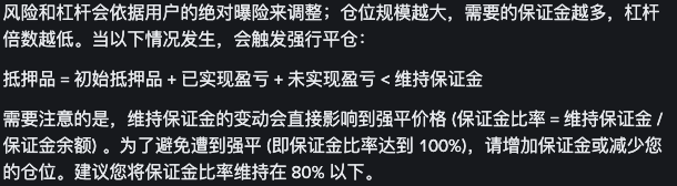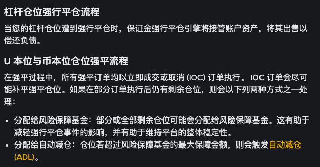 具体的计算方式比较复杂,本质上就是所有的抵押物/仓位价值要大于保证金的要求。其他的全仓杠杆/理财的清仓/强平我就不一一展开了,这里只介绍重点: